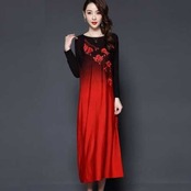 グラデーションと胸元のローズ刺繍が美しい上品なニットドレス★