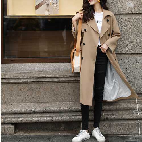 裏地のちょいみせストライプが可愛い今期もトレンドのトレンチコートです。
