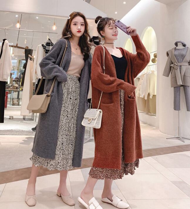 《入荷待ち》ノーカラ―コート ガウン カーディガン ロング丈 ニット セーター 秋 冬 新作 ブラウス ベージュ 可愛い カジュアル ふわふわ 防寒 お洒落 レディース