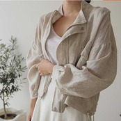 《再入荷》ルーズジャケット リネン 麻 ゆるふわ ハイネック スタンドカラー ジップ ビッグシルエット 夏 秋 ベージュ お出かけ スポーツ レディース