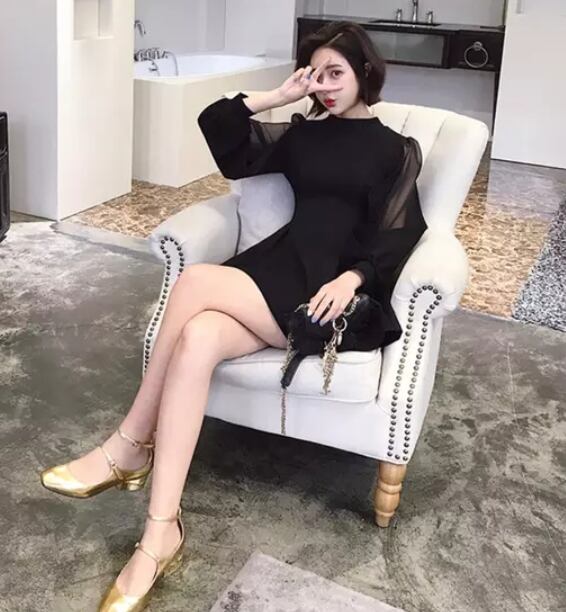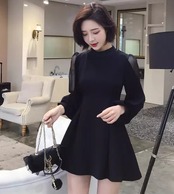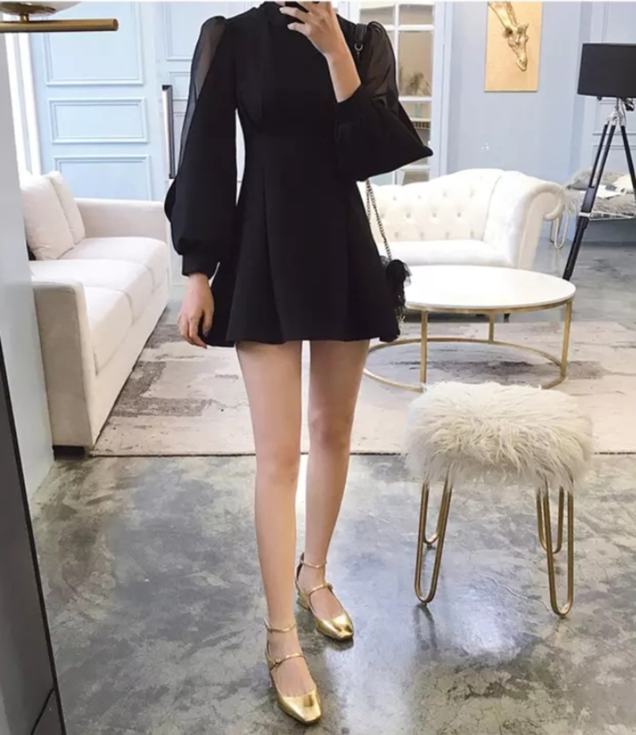 《入荷待ち》ワンピース ドレス スカート ドレッシーエレガント 綺麗 高級 上品 クラシカル シースルー ミニ丈 ブラック バルーン 二次会 パーティー お出掛け お呼ばれ レディース
