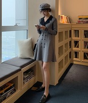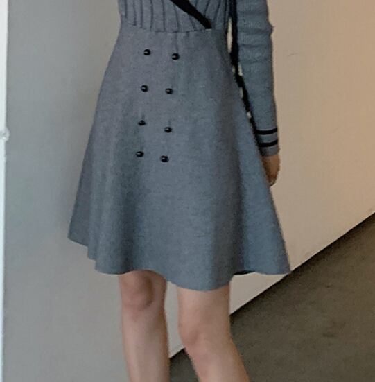 《入荷待ち》ワンピース レトロ ミニ丈 長袖 襟 フロントボタン 切り替えワンピース Vネック 可愛い 大人 シック 上品 高級 レディース 20代 30代