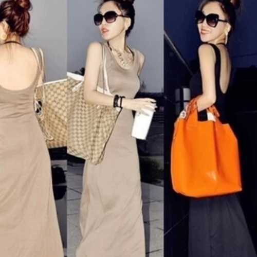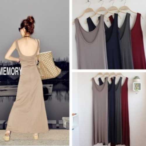 ロングワンピース ノースリーブ Uネック スリム フィット 薄手 全2色 丈違い 夏 秋 バックオープン セクシー 大人 ナイト パーティー 旅行 おでかけ レディース