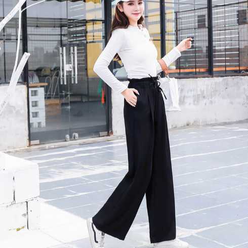ウエストリボンが可愛いストレートなワイドレッグパンツです。