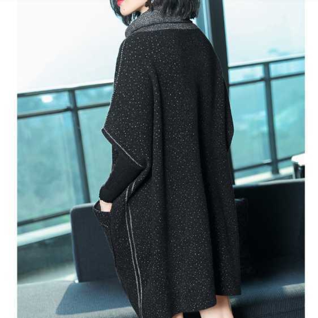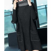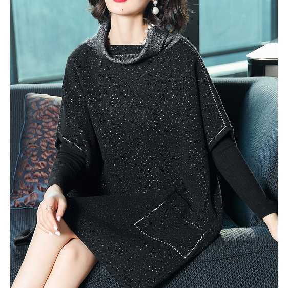 ウール ニット ドレス ワンピース セーター スカート 大きいサイズ 半袖 ミニ丈 タートルネック フロントポケット 秋 冬 ルーズ こなれ感 ラフ お呼ばれ パーティー レディース