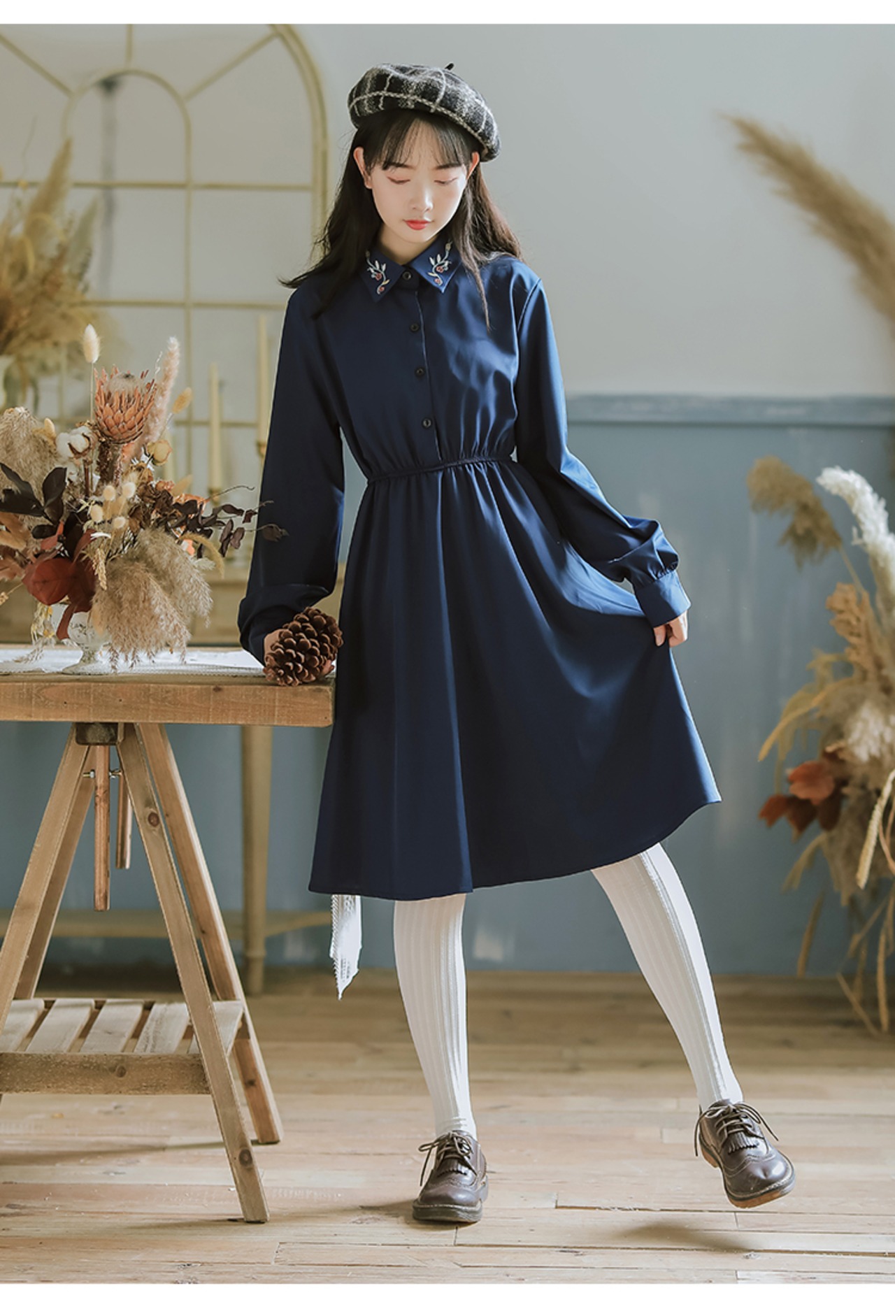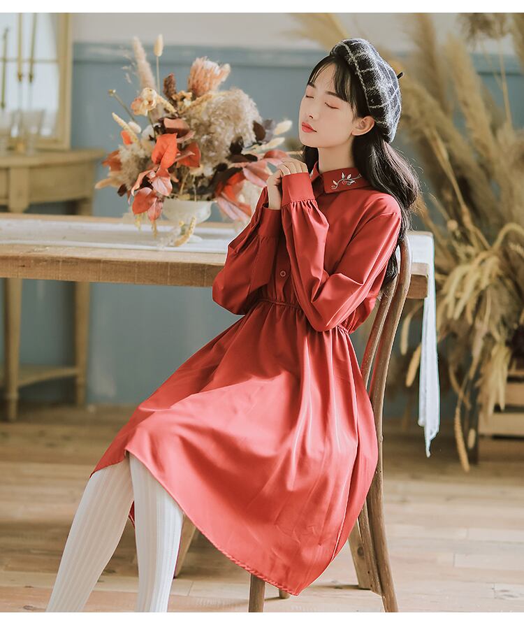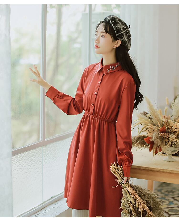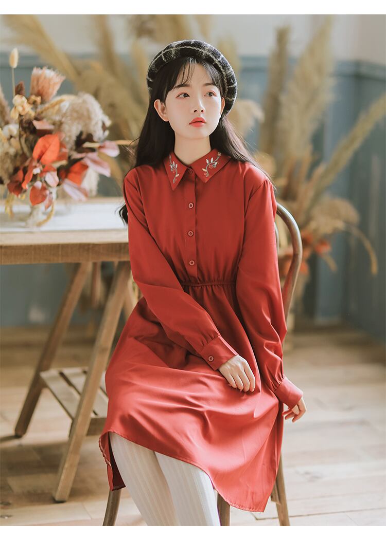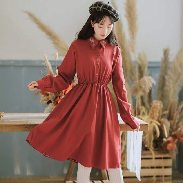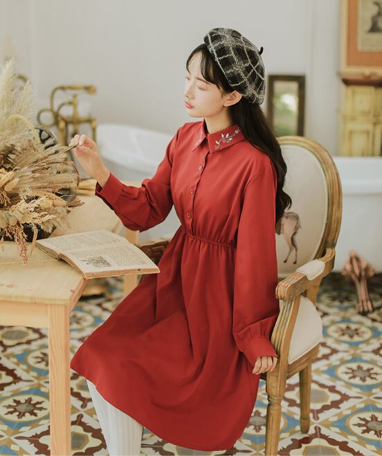 襟の刺繍がポイント!ビビットカラーが可愛いワンピースです。