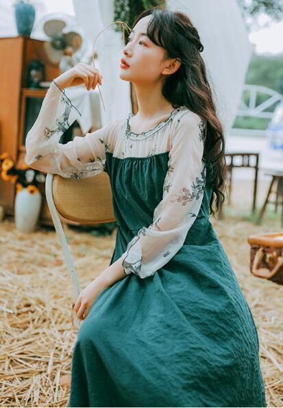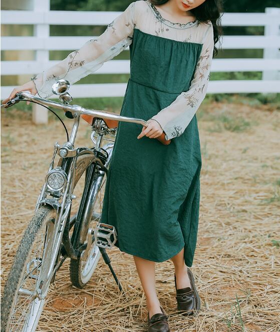 《入荷待ち》ワンピース レース 刺繍 グリーン 上品 透明感 ミディ丈 高級 清楚 お出掛け デート お洒落 20代 30代 レディース