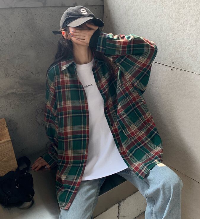 《入荷待ち》全2色 シャツ ロング カジュアル 秋 冬 オータムカラー レッド グリーン トレンド 大人気 可愛い 20代 30代 40代 レディース
