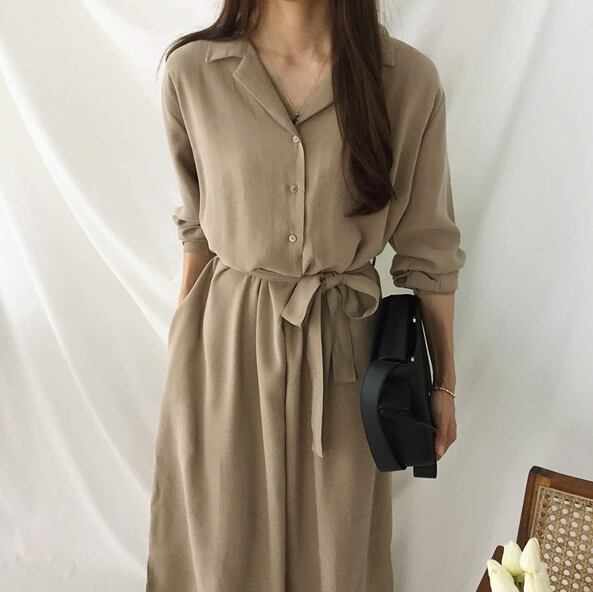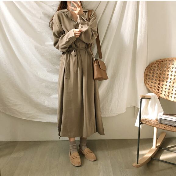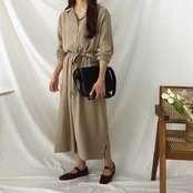 《入荷待ち》ワンピース オールインワン シャツ ロング丈 ブラウン ブラック カジュアル 無地 シンプル トレンド 大人気 20代 30代 40代 レディース