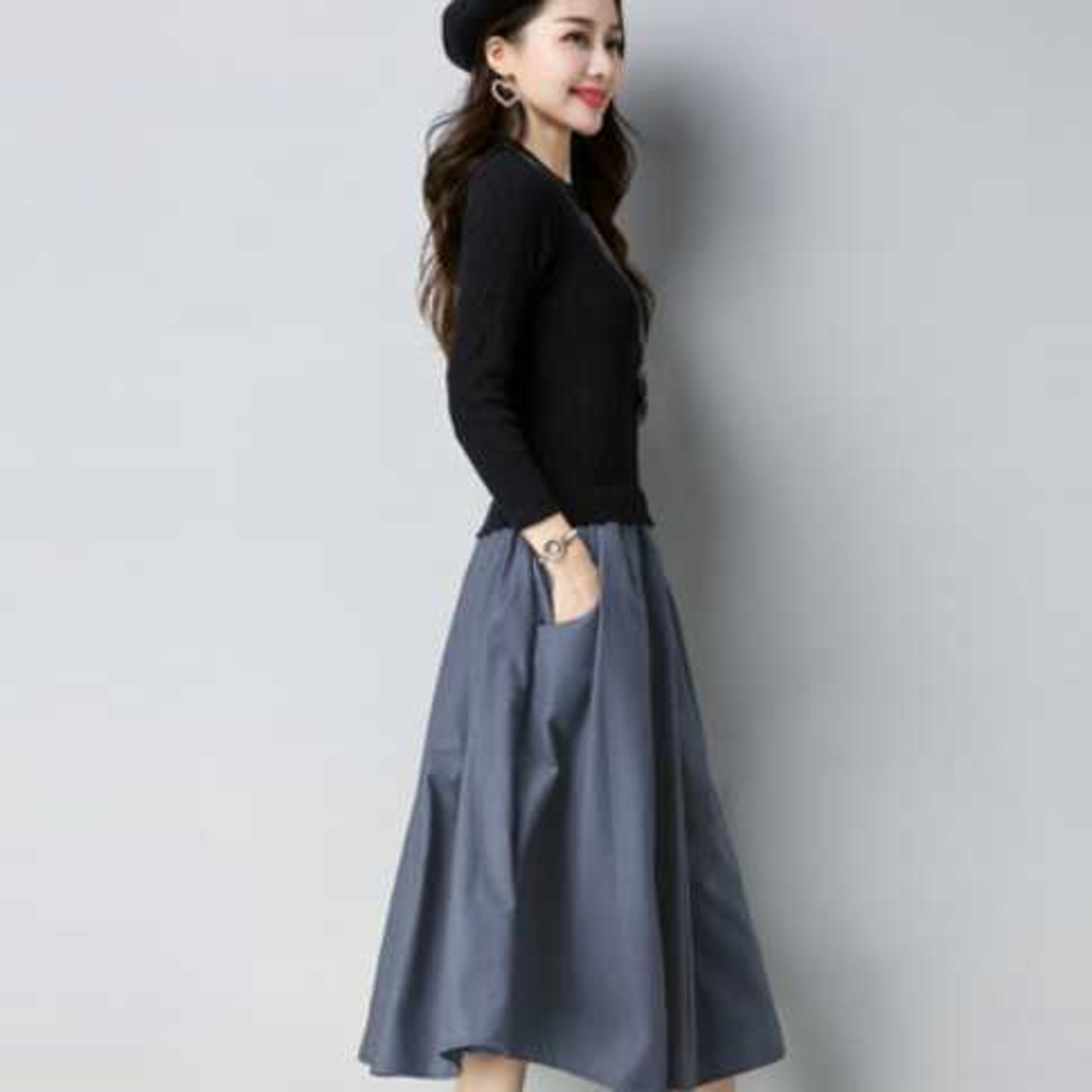 ニット部分はすっきりタイトにウエストラインからは歩くたびに揺れるフレアが綺麗なシルエットを作ってくれます♪