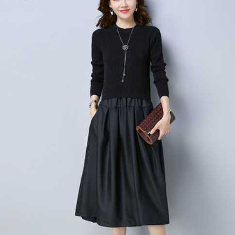 幅広いサイズ展開、カラー、袖丈が選べる2ピース風切り替えニットワンピースドレスです♪