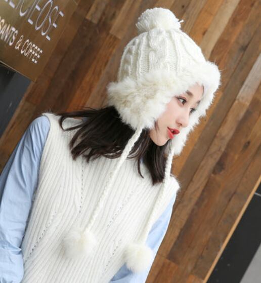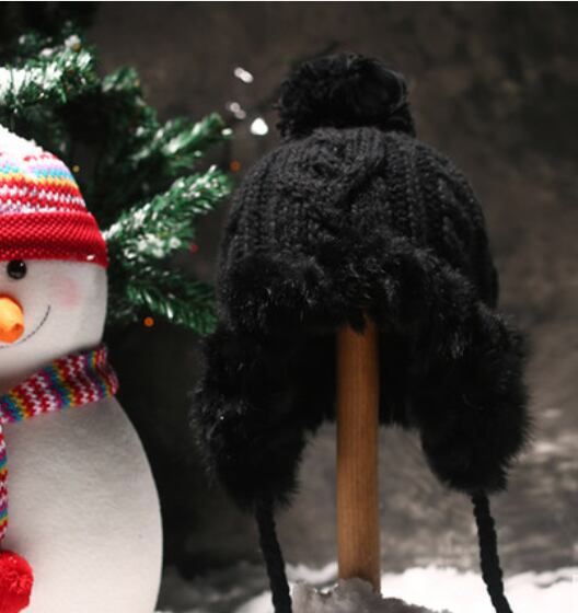 全5色 ニット帽 冬 ファー 可愛い カジュアル ウール キャップニット 帽子 防寒 イヤーキャップ プロテクター レディース