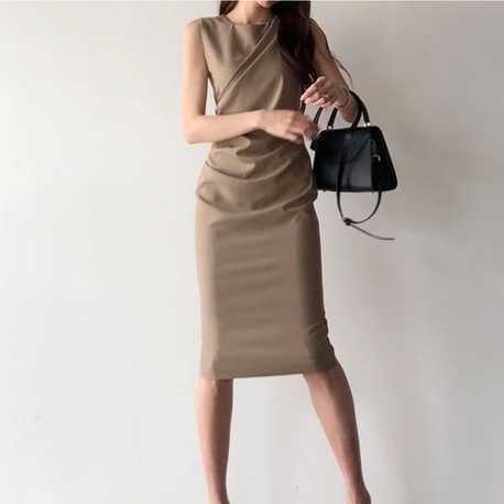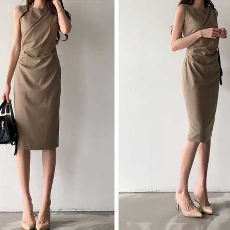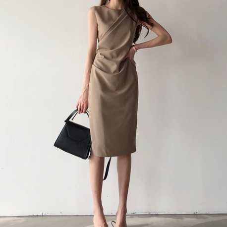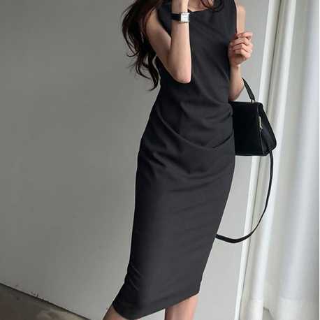 在庫限り 即納 大特価 プチプラ セール ラス1 全2色 ワンピース ドレス ストレート タイト ボートネック ノースリーブ 膝丈 スリム ストレッチ タック パーティー デート 大人 上品 スタイリッシュ レディース