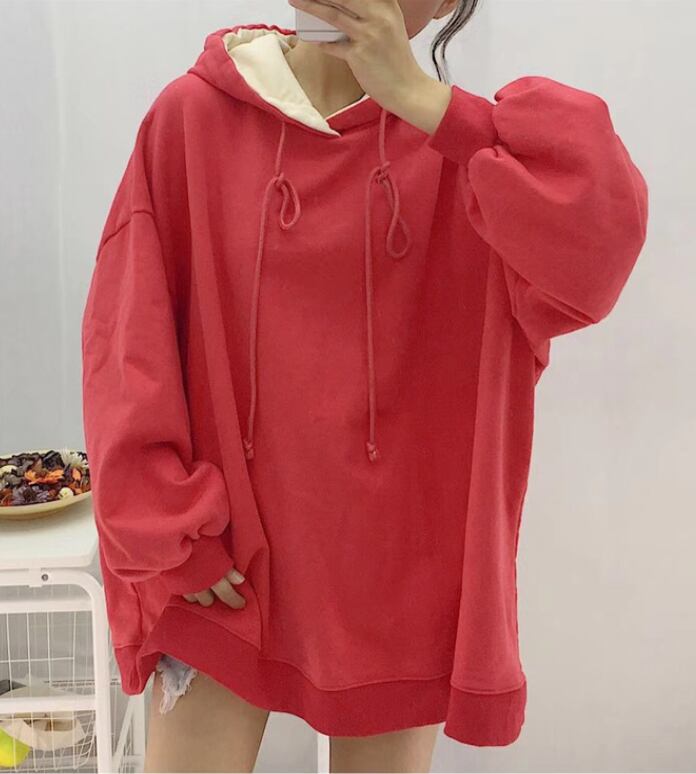 《再入荷》全6色 ワンサイズ ビックシルエット パーカー カジュアル 無地 デザイン かわいい スポーティー お洒落 レディース 秋 冬
