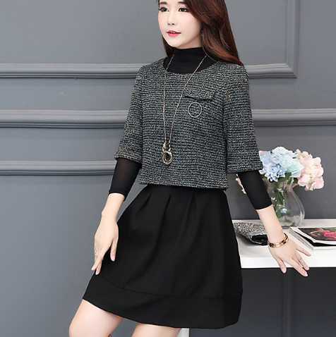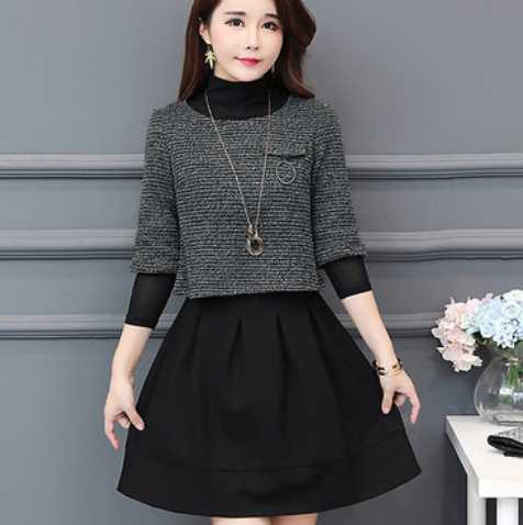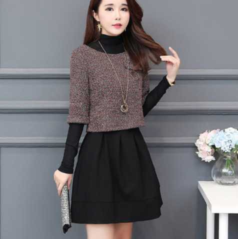 ツーピース セットアップ ワンピース 長袖 ミニ丈 膝上 ハイネック タートルネック 秋 冬 ツイード 通勤 お呼ばれ デート ディナー 大人 フェミニン 上品 清楚 レディース