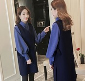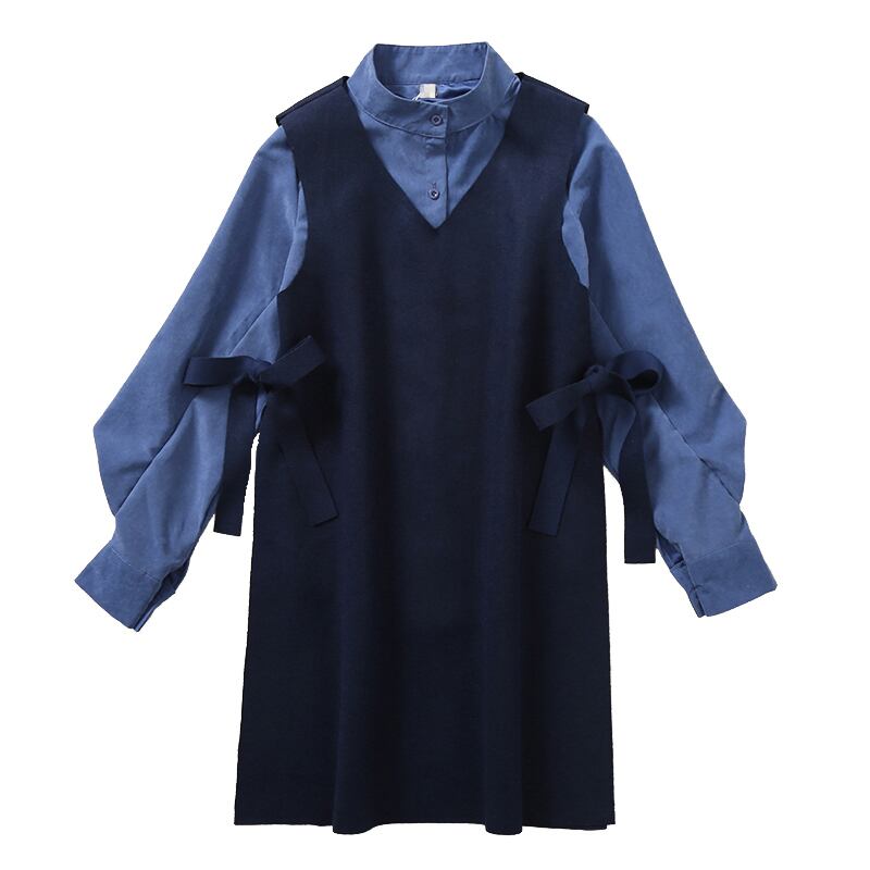 ハイネックのノーカラーシャツとワンピースのセットアップアイテム!