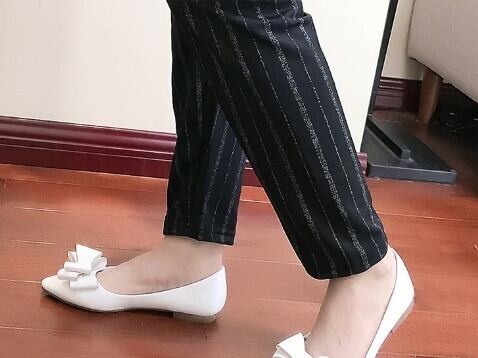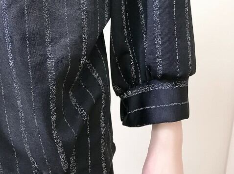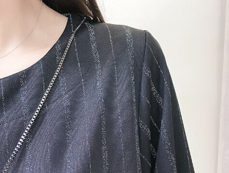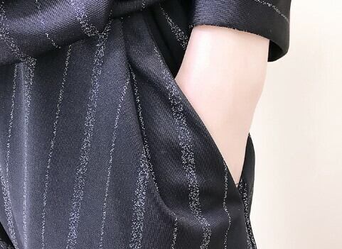 ラメ感のあるストライプで縦ラインを強調すればスッキリ細見え効果!