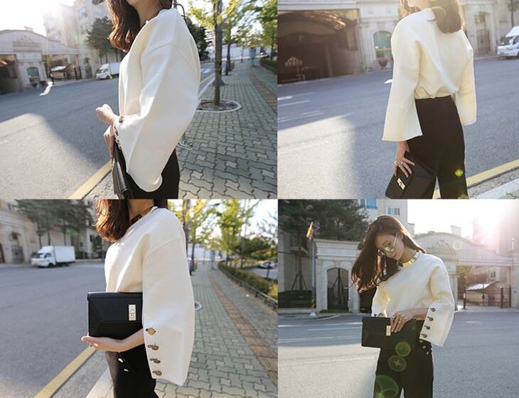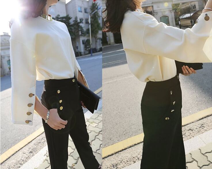 《入荷待ち》トップス ホワイト 7分袖 パリ クラシカル カフス ボタン スリット 上品 ラウンドネック レディース 20代 30代 40代 オフィスカジュアル キレイめ