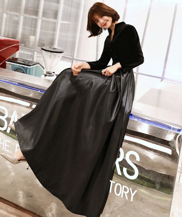 大きいサイズ パーティードレス ロング マキシ丈 長袖 スタンドカラー Vネック ハイネック ベロア 別珍 ドッキングワンピース 結婚式 二次会 謝恩会 女子会 ディナー クリスマス デート お呼ばれ フェイクレザー 大人可愛い オシャレ こなれ ハイウエスト 赤 黒