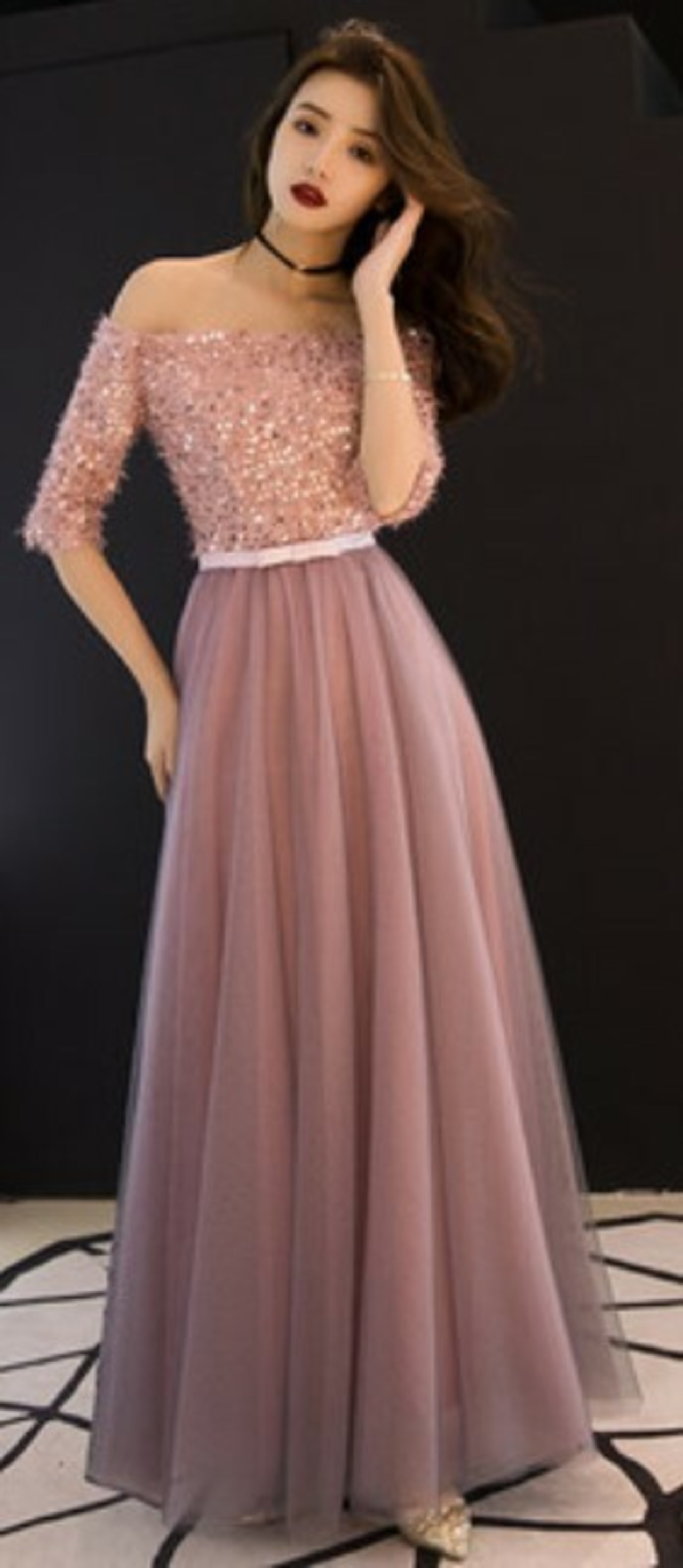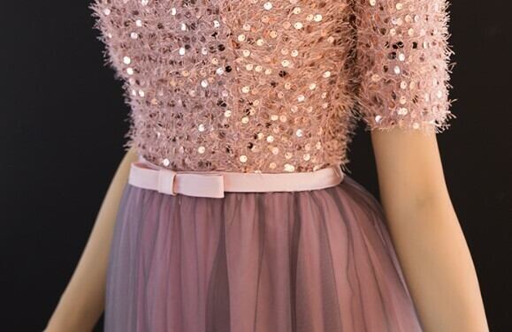 小さいサイズ パーティードレス 半袖 もこもこ ドッキングワンピース ドッキングワンピース 異素材 ハイウエスト切り替え リボンベルト 細ベルト スパンコール チュール ピンク ドレッシー オフショルダー くすみピンク グラデーション 華やか ガーリー 大人可愛い 結婚式 二次会 謝恩会 ディナー デート クリスマス