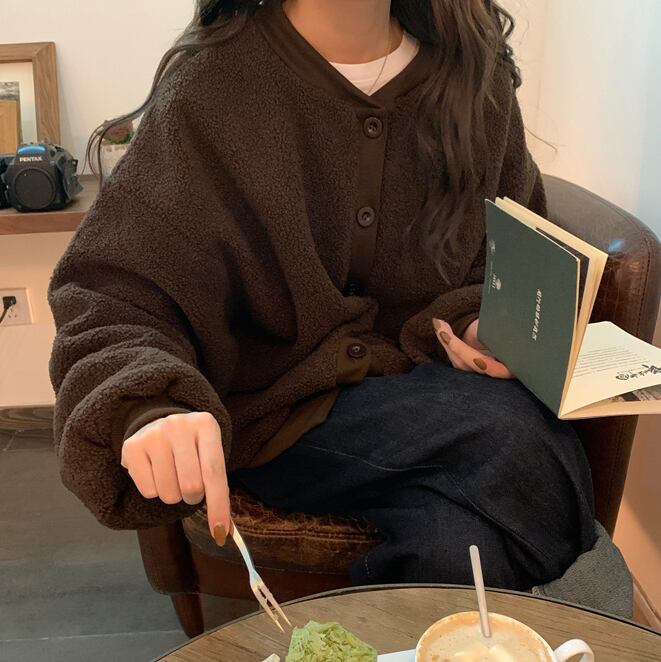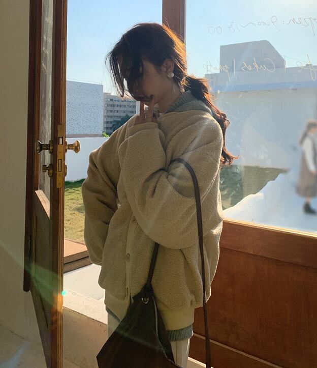 《入荷待ち》全2色 ボア アウター カーディガン 秋 冬 カジュアル ガーリー ベージュ ブラック 無地 シンプル 可愛い トレンド 大人気 お出かけ アウトドア レディース