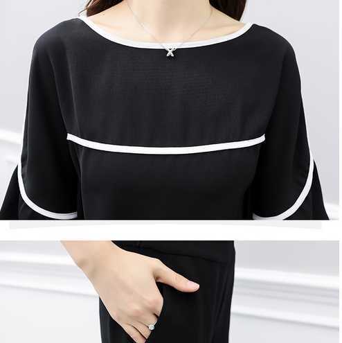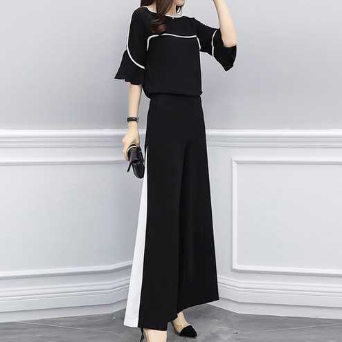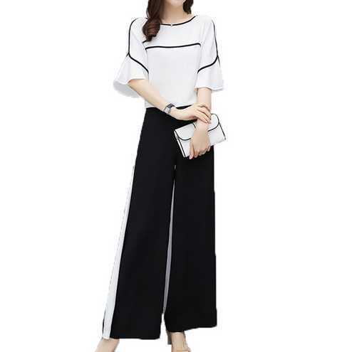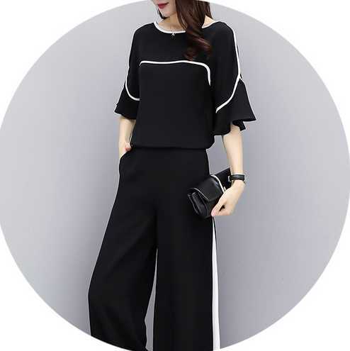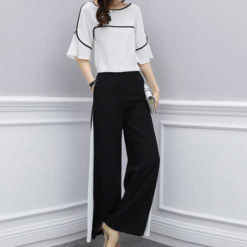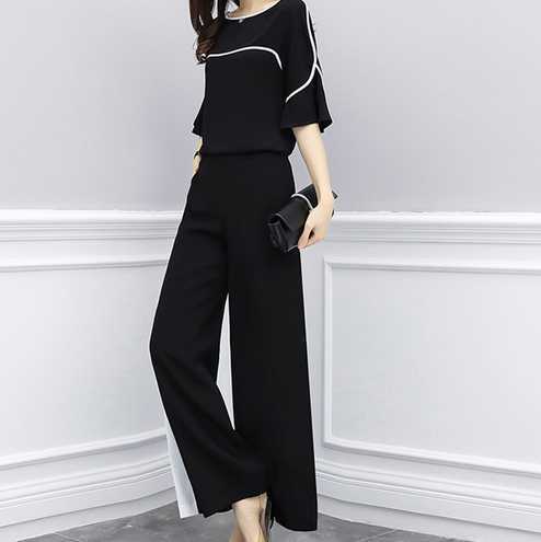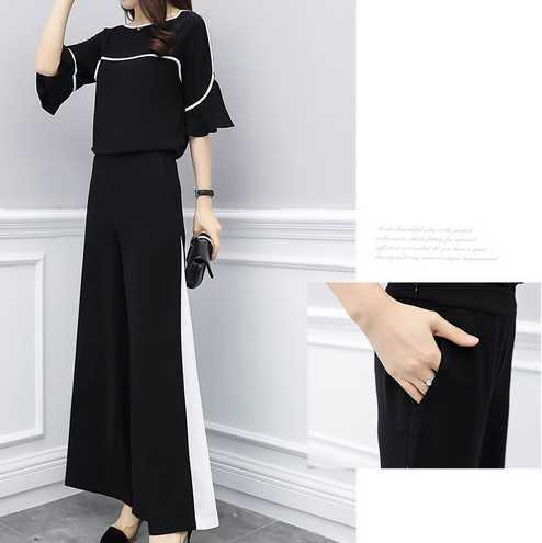 即納 数量限定 在庫あるだけ セール 超特価 セットアップ リラックス セパレート ルームウェア 動きやすい おうちコーデ ライン入り ツーピース ワイドパンツ ボートネック シフォン トップス パンツ ホワイト ブラック セットアップ 大人可愛い スタイリッシュ フリル袖 五分袖 大きいサイズ レディース