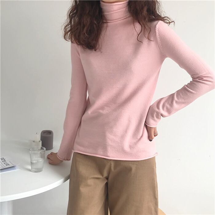 全4色 ハイネック ニット セーター トップス ソリッドカラー 可愛い 冬 新作 防寒 あったかい お出掛け オフィスカジュアル トレンド 無地 シンプル レディース
