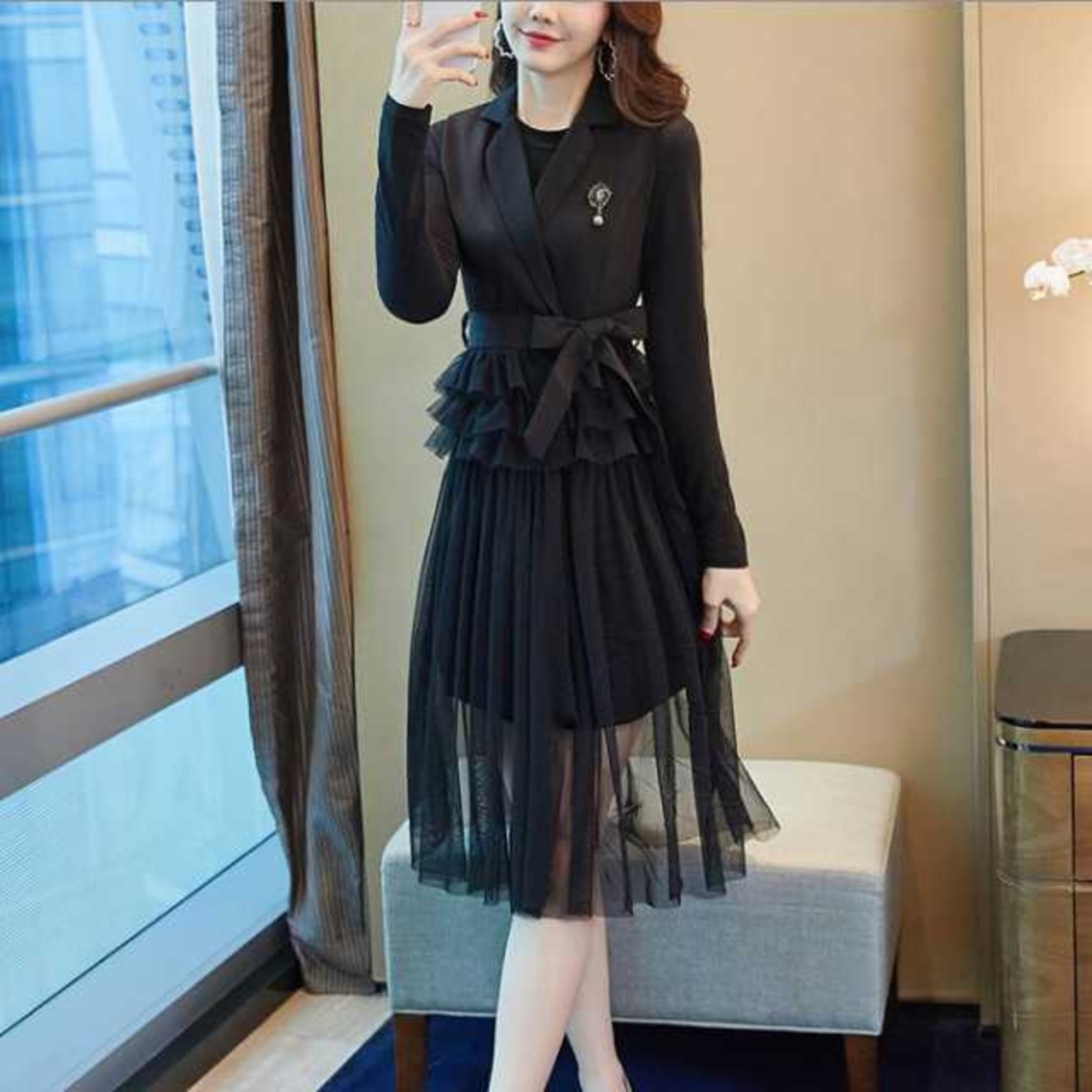 《入荷待ち》 ツーピース ワンピース トップス 2点セット セットアップ カットソー 長袖 無地 シンプル 黒 ラウンドネック ドッキングワンピ ベスト ハイウエスト リボンベルト チュールスカート 異素材MIX 大人可愛い キレイめ デート お呼ばれ パーティー 結婚式 二次会 華やか クリスマス 女子会 合コン 街コン 婚活 秋 冬 透け感 ミニ ティアード ブローチ