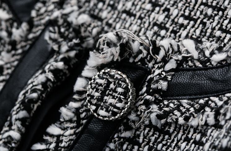 チェック柄のノーカラジャケットは冬でも暖かく着て頂けます。
