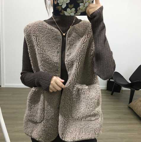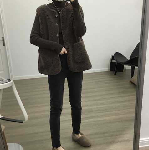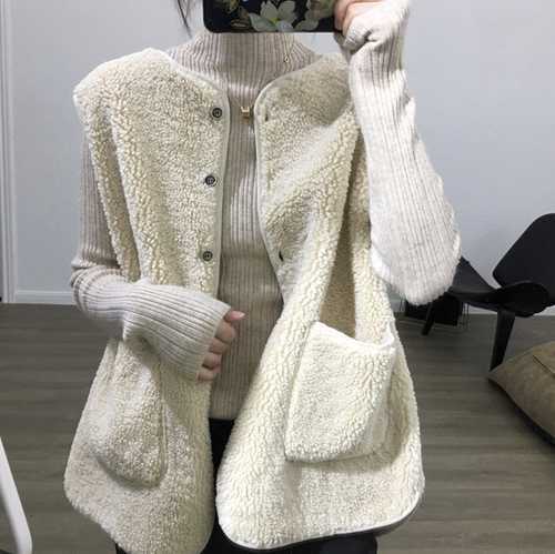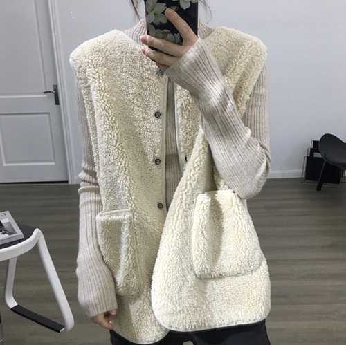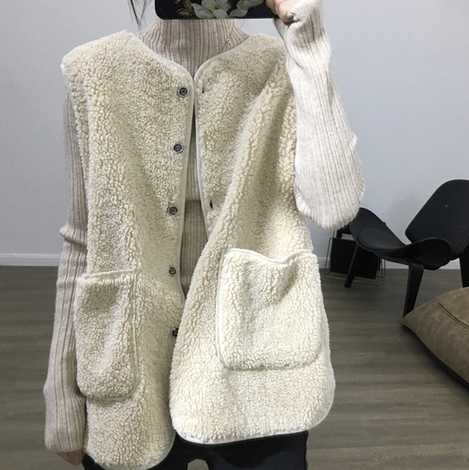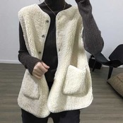 《入荷待ち》全3色 ウールベスト コート ボタン フロントポケット ボートネック ノースリーブ シンプル あったか ふわふわ カーディガン 秋 冬 カジュアル かわいい レディース