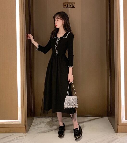 襟付き、シンプルだから1枚でキチンと見えする大人っぽワンピース♪