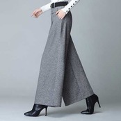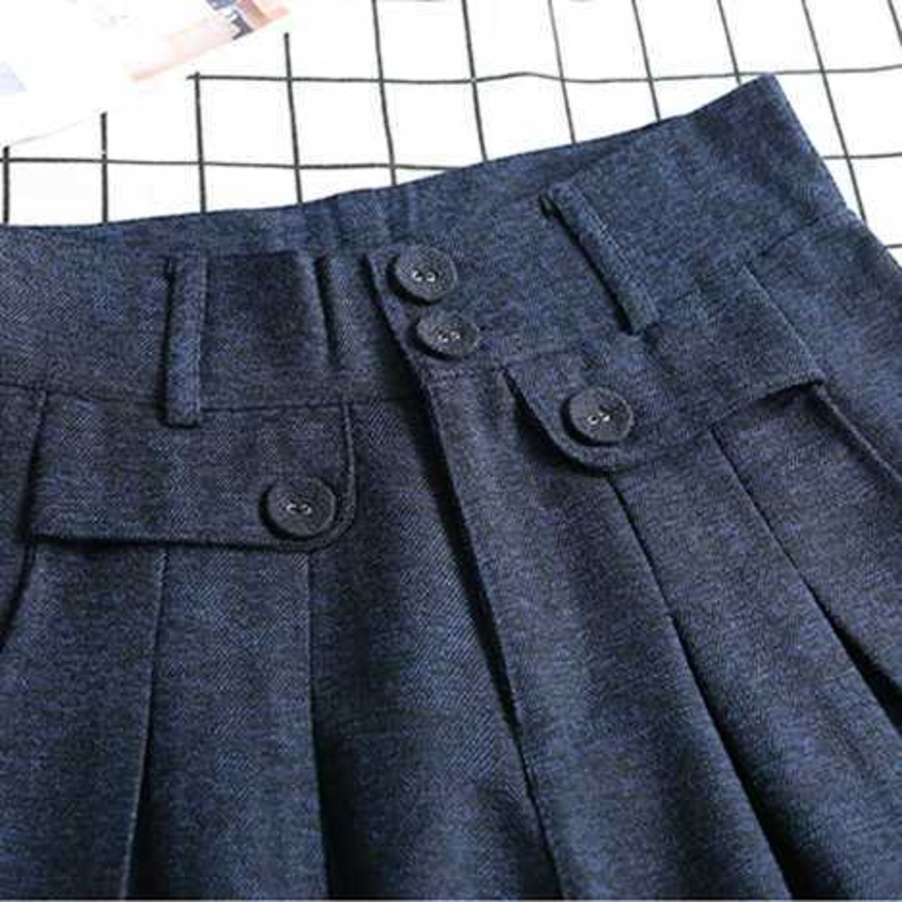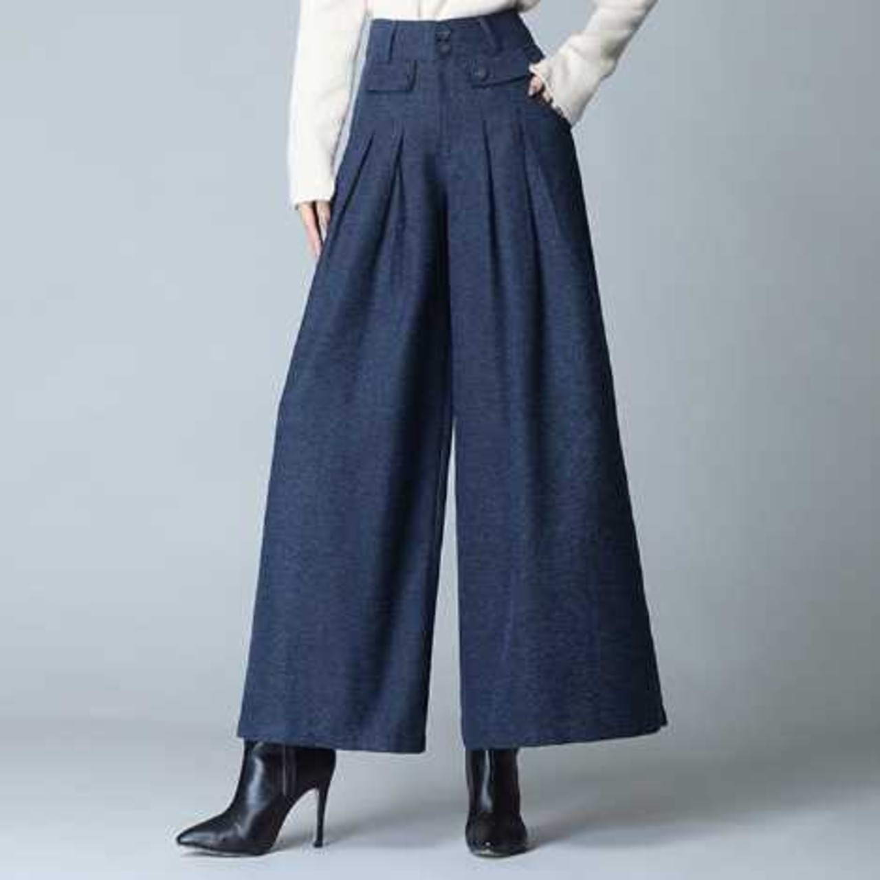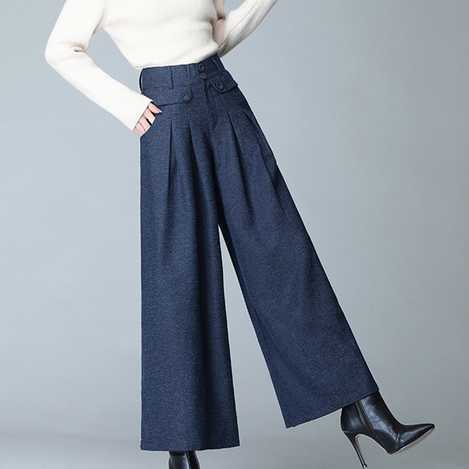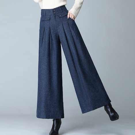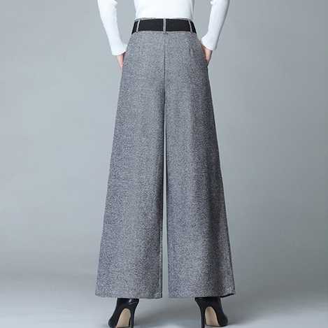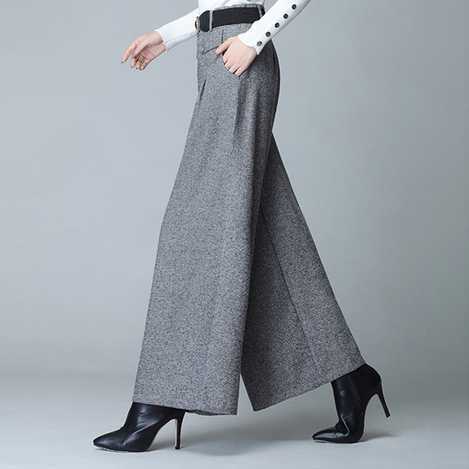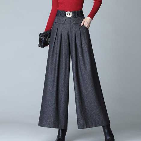 《入荷待ち》 大きいサイズ ワイドパンツ ウール ベルト付き ボタン ポケット スタイリッシュ 無地 シンプル カジュアル 秋 冬 全3色 レディース