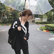 ニット セーター オーバーサイズ カジュアル 可愛い お洒落 バイカラ― ホワイト×ブラック スポーティ 甘辛コーデ 冬 防寒 レディース