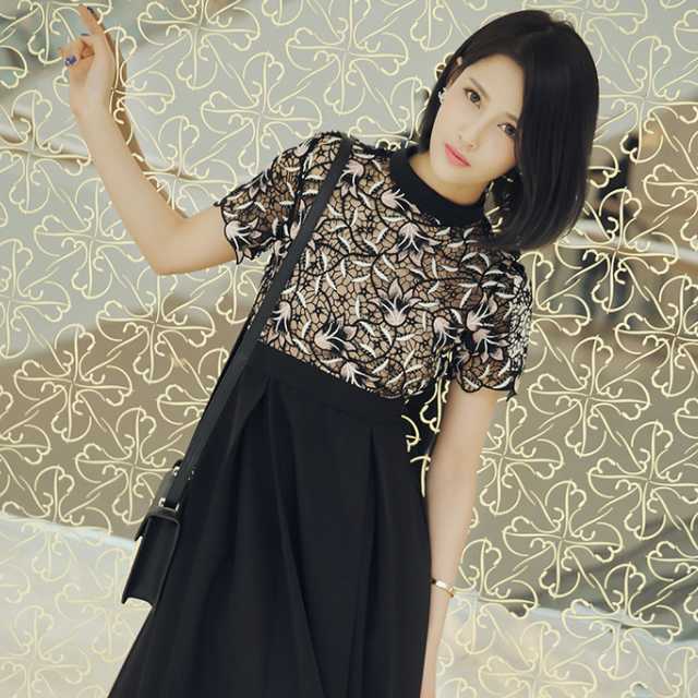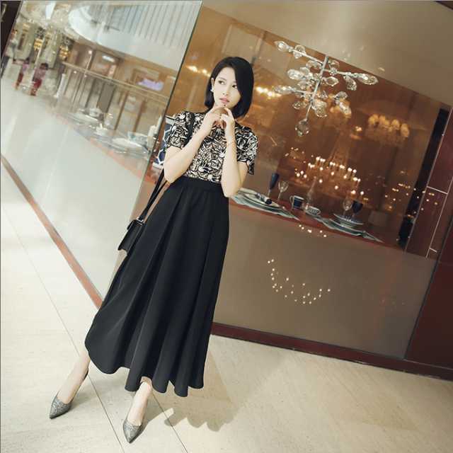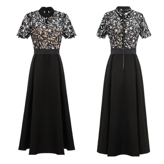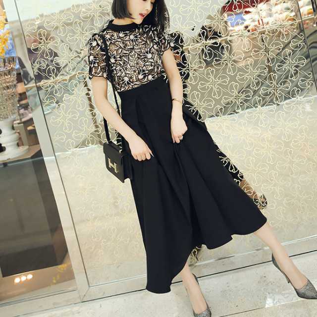 《入荷待ち》大きいサイズ 黒 レディース ドレス ワンピース ミディ丈 膝下丈 半袖 シースルー 20代 30代 40代 上品 シンプル クール セクシー お呼ばれ 結婚式 披露宴 二次会 デート ディナー 謝恩会 発表会 フラワー 花 刺繍 カジュドレ かわ大