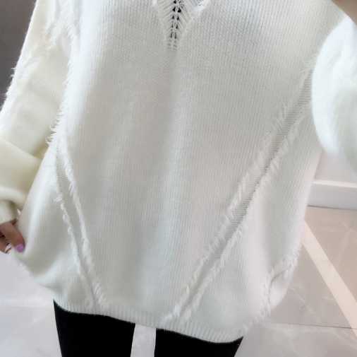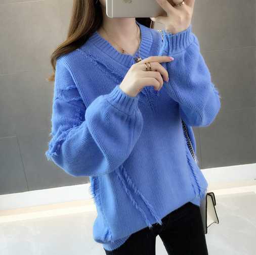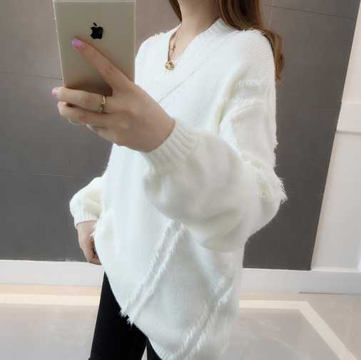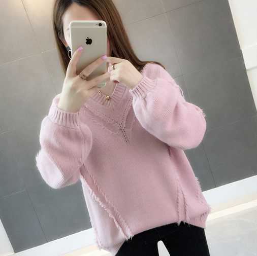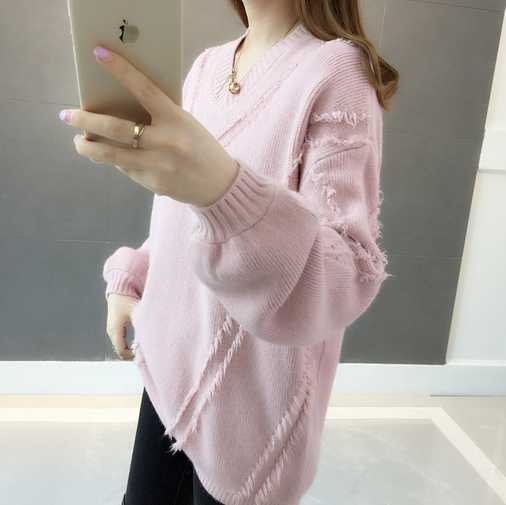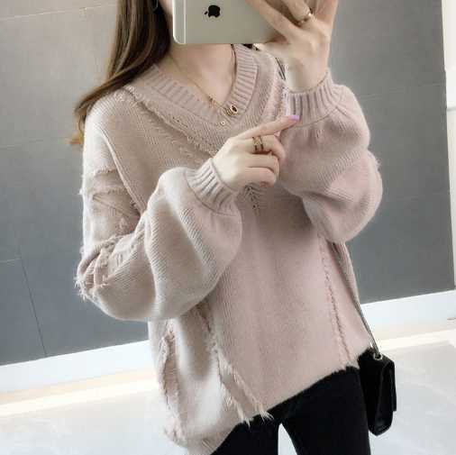 《入荷待ち》全4色 Vネック ルーズセーター ニット 長袖 ランタンスリーブ パフスリーブ ゆるふわ カジュアル フェミニン 大人かわいい 秋 春 レディース