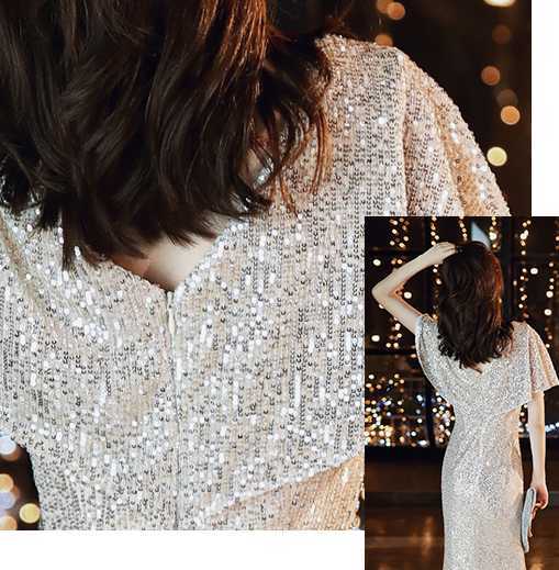 4デザイン パーティードレス スパンコール イブニングドレス フィッシュテール マーメイドライン セクシー 煌びやか 大人 美しい 冬 レディース