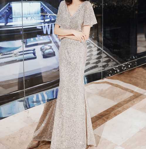 スパンコールが煌びやかな歩くたびにキラキラ輝くパーティードレス。