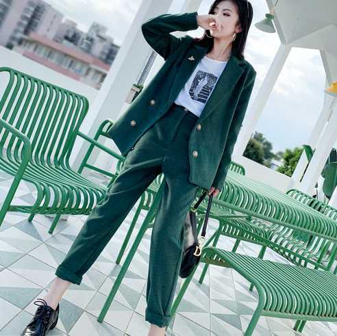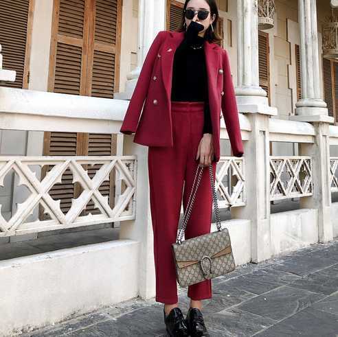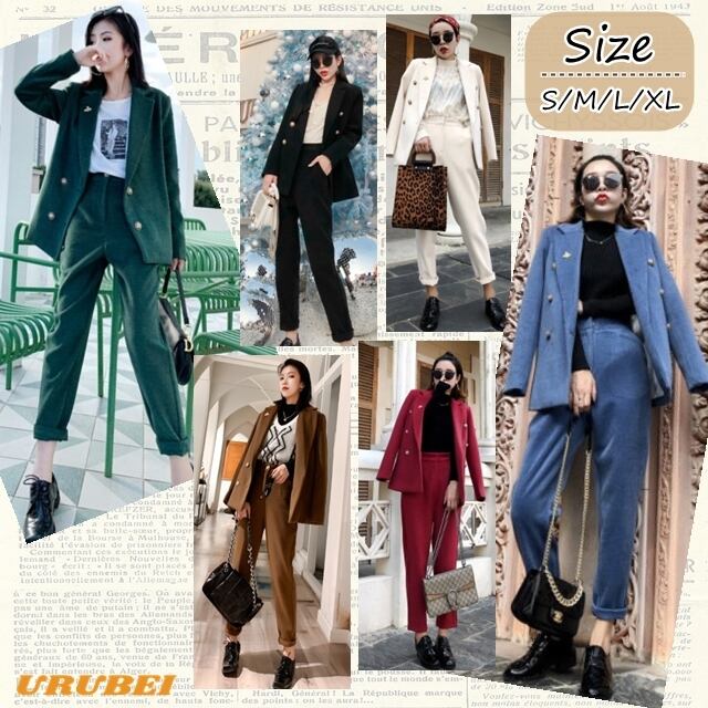 《入荷待ち》全5色 ツーピース ウール パンツスーツ スーツ ダブルボタン Vネック 長袖 スキニーパンツ ストレート 大人 かっこいい 上品 スタイリッシュ 通勤 お呼ばれ 秋 冬 レディース