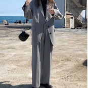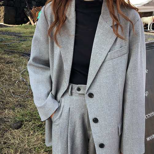 《入荷待ち》 スプリットスーツ テーラードジャケット アウター 上品 シック スタイリッシュ オーバーサイズ 羽織り 全2色 秋 レディース