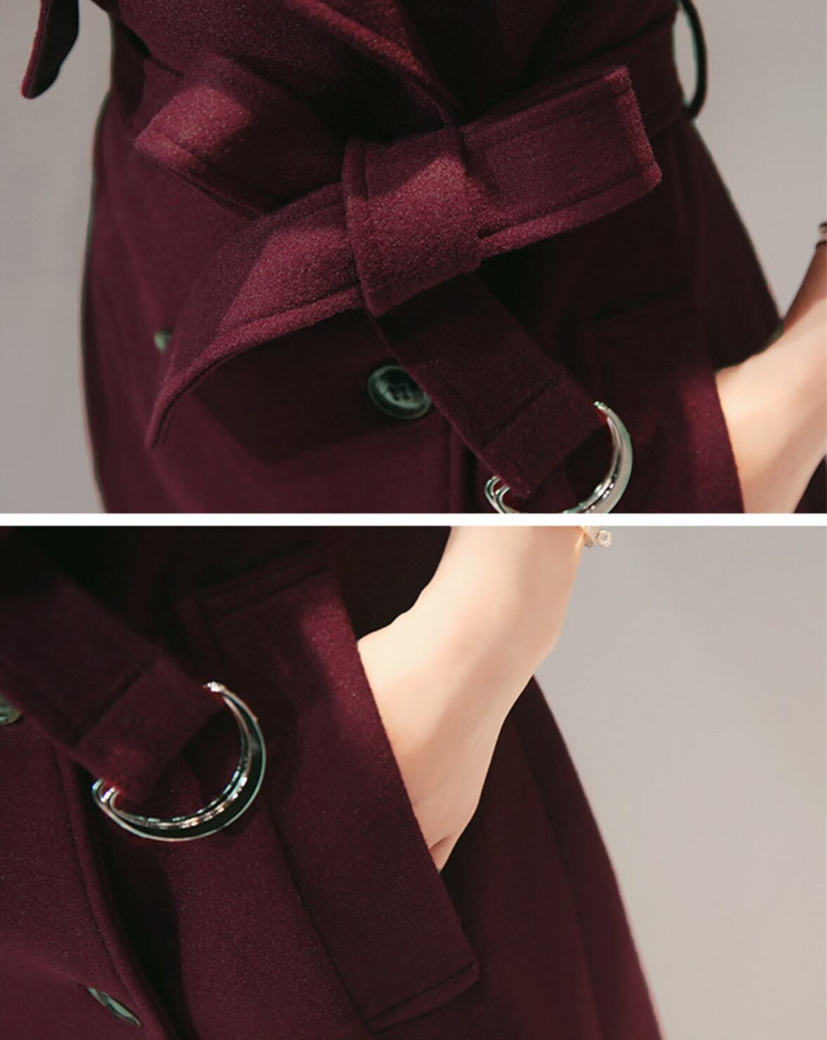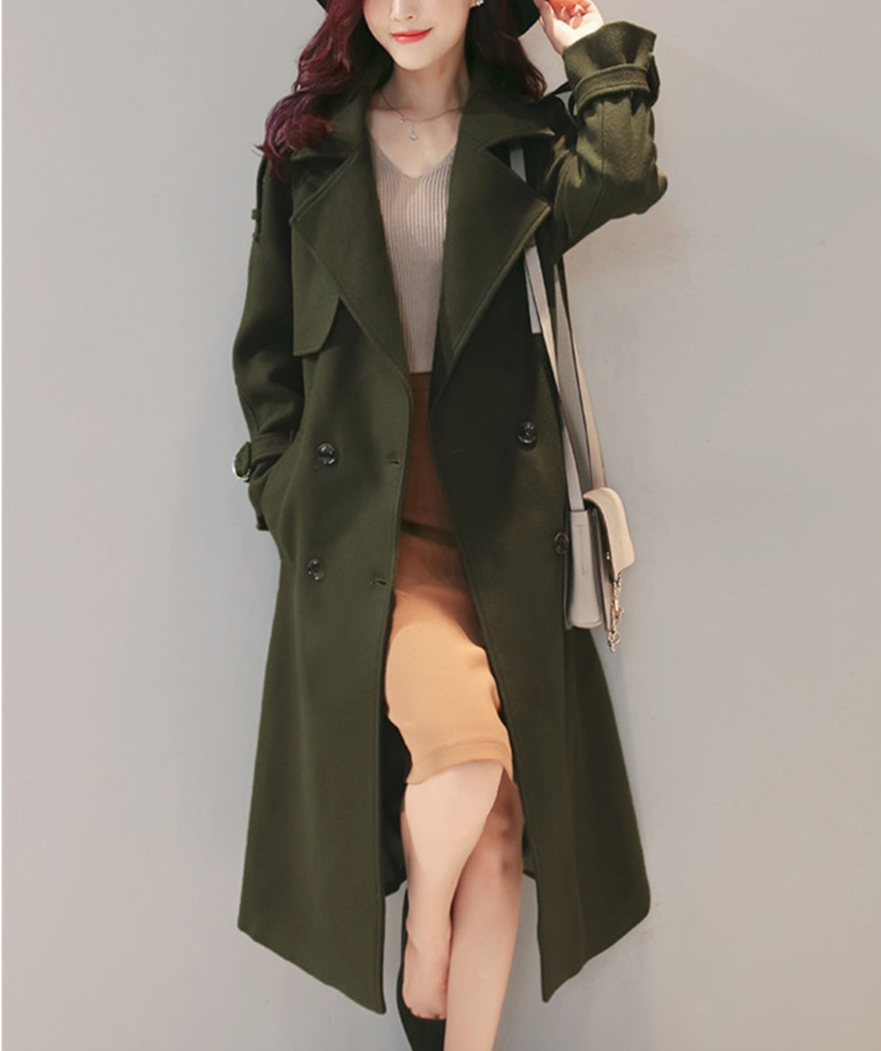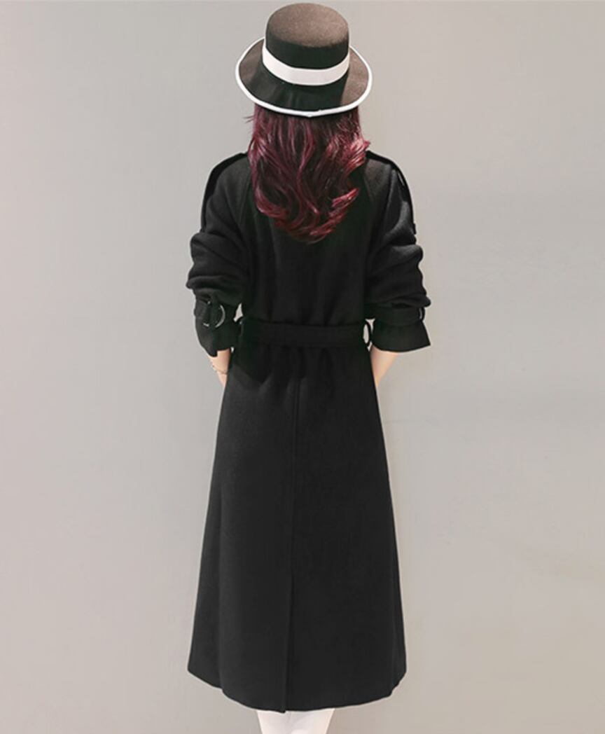《入荷待ち》大きいサイズ 全3色 ロングコート チェスターコート ダークカラー 可愛い お洒落 ウエストベルト 秋 冬 レディース