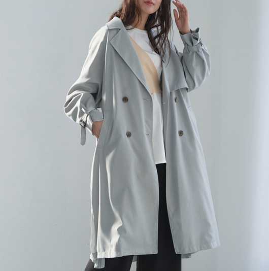 《入荷待ち》バックプリーツ トレンチコート ダブルボタン 長袖 Vネック エレガント 上品 フェミニン 春 秋 全3色 レディース