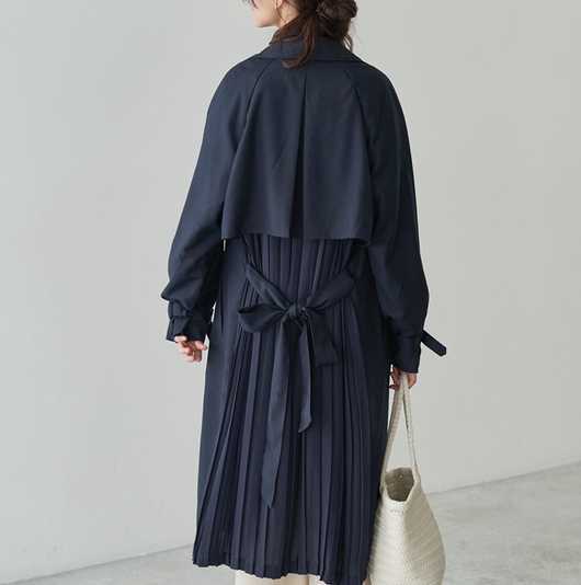バックプリーツが可愛すぎるエレガントでフェミニンなトレンチコート。