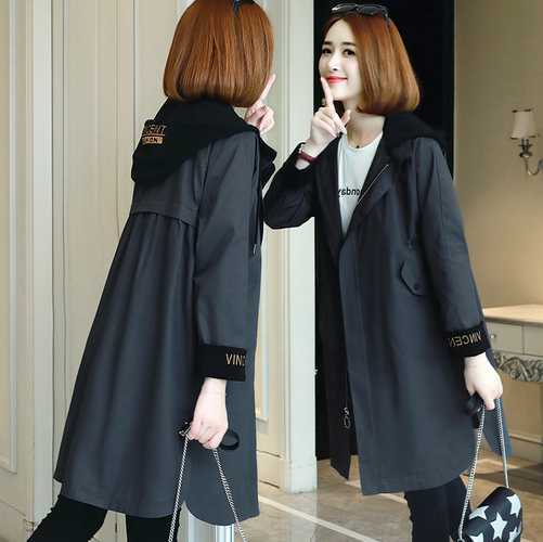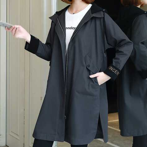 《入荷待ち》全3色 大きいサイズ フード付き ブルゾン ジャンバー トレンチ ロゴ入り 刺繍 フェミニン 大人かわいい 長袖 ジッパー ラフ カジュアル オーバーサイズ レディース