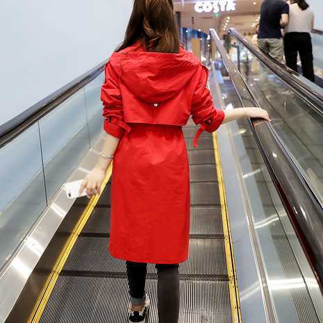 選べる2タイプ フード付き ウィンドブレーカー コート トレンチコート 裏起毛 ノーマル 長袖 ハイウエスト 春カラー ミディ丈 シンプル フェミニン 通勤 通学 カジュアル 全4色 春 秋 レディース