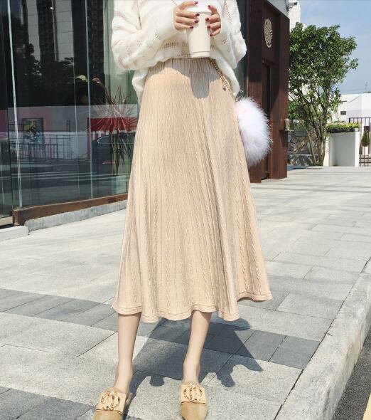 《入荷待ち》 全4色 レディース スカート ミドル丈 ひざ下 Aライン ニット素材 お洒落 ナチュラル 大人かわいい シンプル 着回し デイリーコーデ デート お出かけ ショッピング ランチ 女子会 プチプラ トレ定