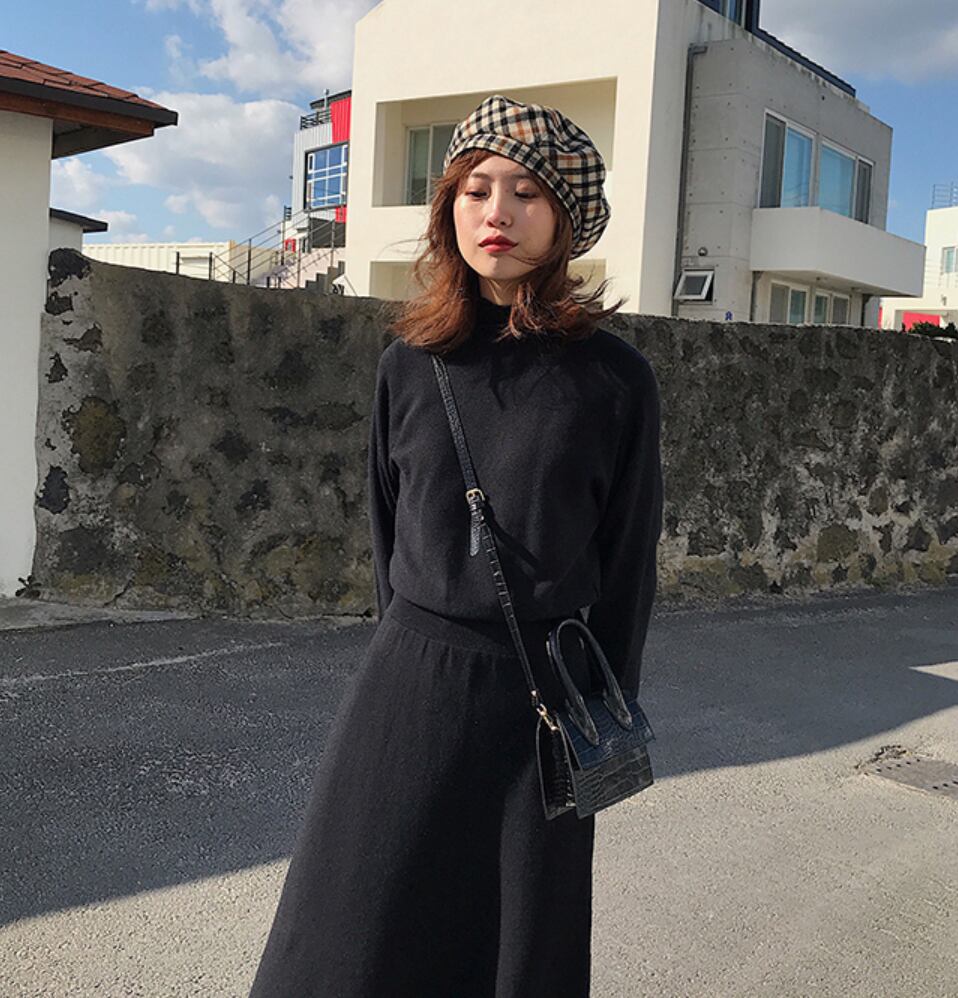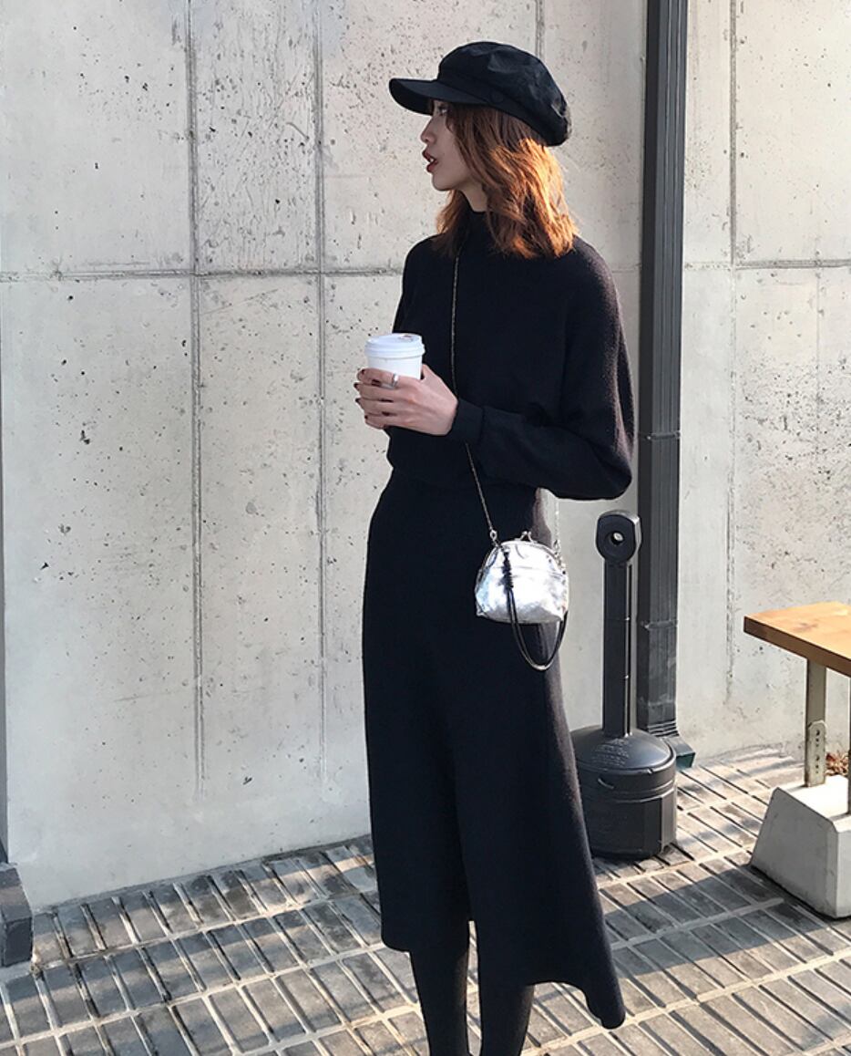 《入荷待ち》ワンピース ニット ブラック ハイネック 上品 大人 モード シック 無地 シンプル 可愛い タイト レディース