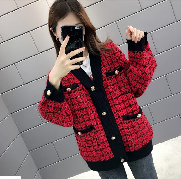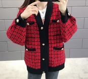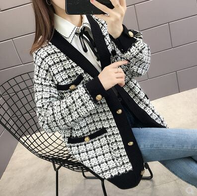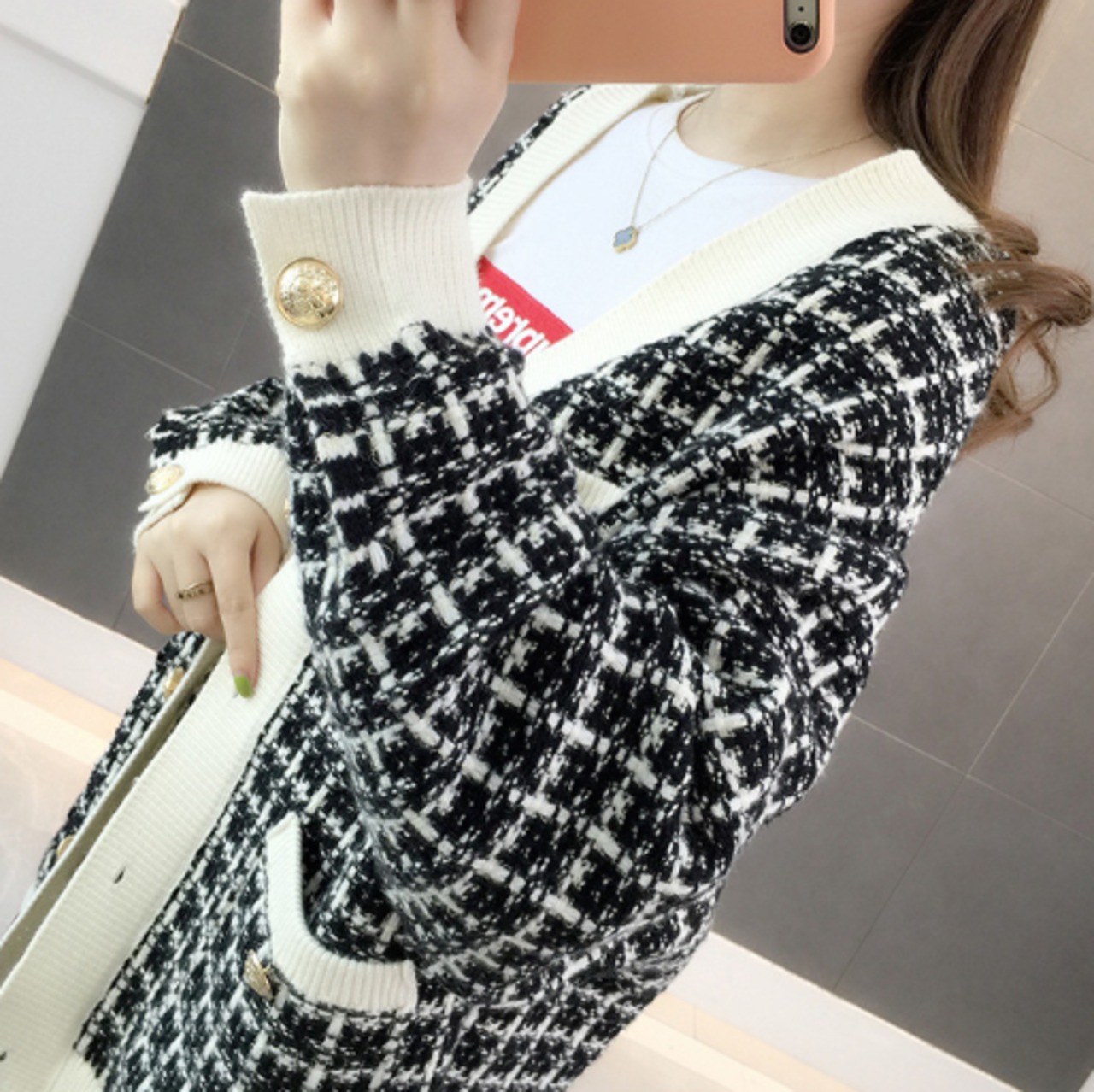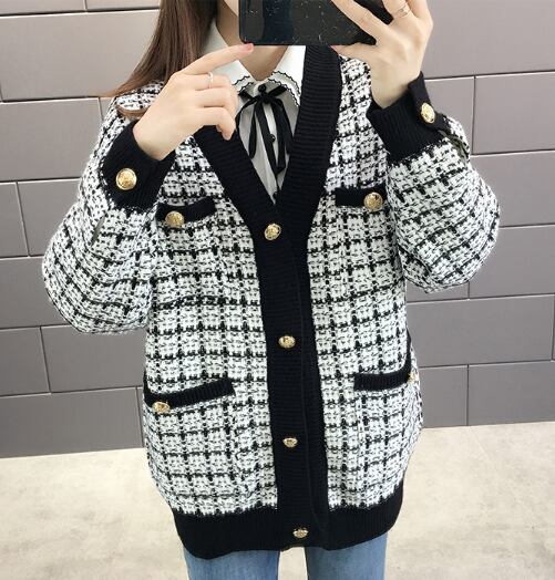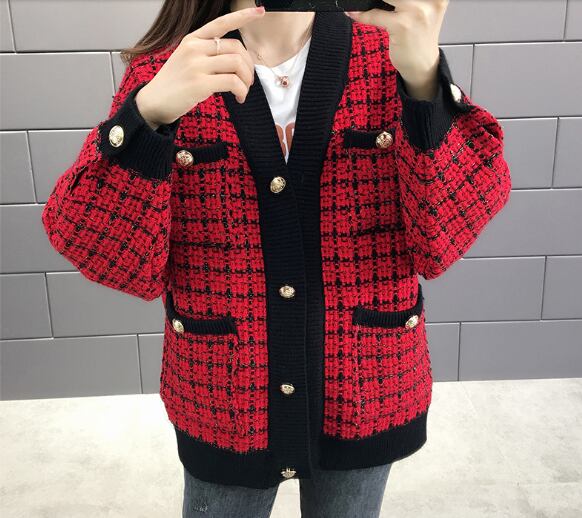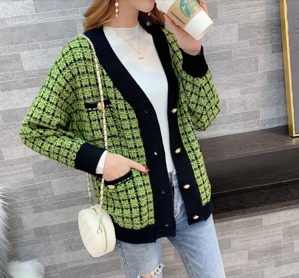 全4色 レディース アウター 上着 羽織り カーディガン Vネック チェック柄 お洒落 レトロ カジュアル 大人かわいい エレガント ゆったり 長袖 秋 冬 ドレジャ