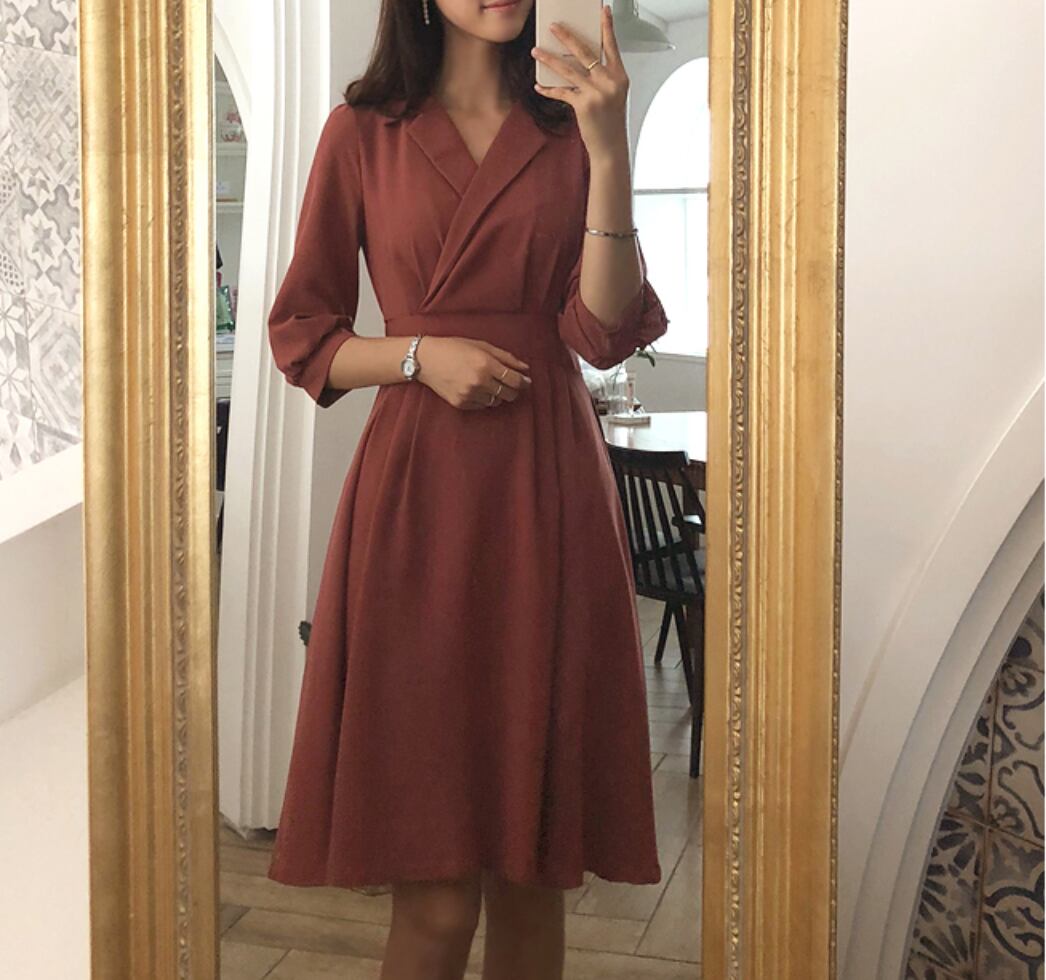《入荷待ち》 全2色 ワンピース 入学式 お宮参り イベント ソリッドカラー 春 Vネック 膝丈 無地 大人 シンプル レディース 上20 式30 30普