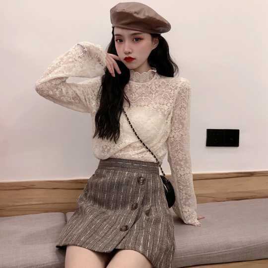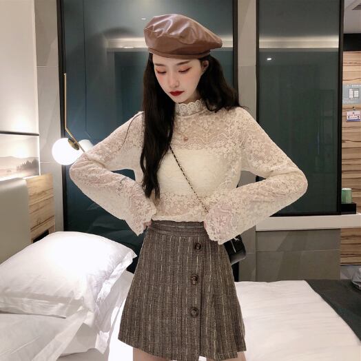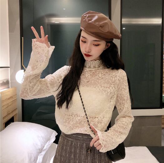 《入荷待ち》レディース トップス 総レース シフォン 透け感 ハイネック こなれ 可愛い お洒落 ゆるふわ 清楚 ナチュラル フェミニン お出かけ デート ショッピング 女子会 ランチ