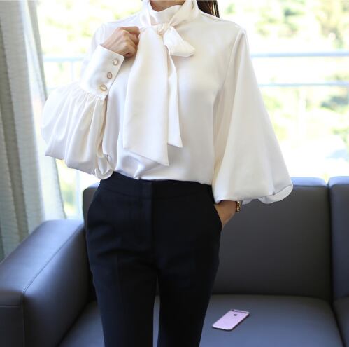 《入荷待ち》全2色 レディース シフォンブラウス トップス リボンタイ 袖コンシャス 長袖 サテン生地 光沢 大人可愛い お洒落 華やか 上品 エレガント きれいめ お呼ばれ お祝い フォーマル パーティ 演奏会 発表会 セレモニー 表彰式 上20 式30 トレ定